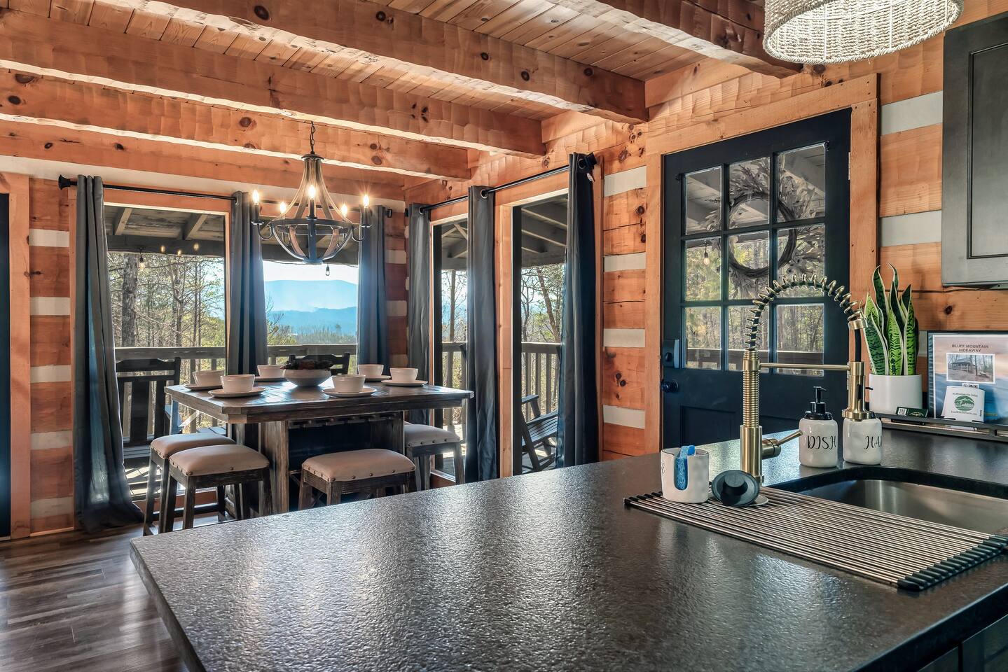 ◆ WHY YOU’LL LOVE STAYING AT BLUFF MOUNTAIN HIDEAWAY ◆ 🌄 Year‑Round Mountain Views Wake up to stunning Smoky Mountain scenery visible from multiple spots throughout the Appalachian style cabin. Enjoy sunrise views from the loft bedroom’s large windows and peaceful vistas all day long. Note: Longer‑range views may vary due to the natural haze common in the Smokies. 🛁 Private Outdoor Hot Tub Relax after a day of exploring with your very own hot tub—perfect for unwinding in the fresh mountain air. 🎮 Fun for the Whole Family Stay entertained no matter the weather with: → Foosball table → Mini arcade game → Smart TVs throughout the cabin → High‑speed Wi‑Fi for streaming and remote work 🔥 Cozy Indoor Atmosphere Curl up by the electric indoor fireplace for a warm, relaxing evening. 🪵 Beautifully Renovated Cabin Recently updated with: → Leathered granite countertops → Soft‑close cabinets → LVP flooring throughout → Newly updated upstairs shower A charming log cabin feel with fresh, modern touches. 🛌 Open Loft Bedroom Retreat The open loft bedroom features big windows with stunning mountain views and an airy design overlooking the main level. 🪑 Large Wrap‑Around Porch One of the cabin’s standout features—enjoy the wrap‑around deck equipped with: → Swing → Rocking chairs → Peaceful wooded and mountain views → Plenty of space to relax and unwind 🍗 Charcoal Grill Perfect for cookouts while enjoying mountain views from the picnic table. ◆ CLOSE TO EVERYTHING ◆ This peaceful mountain cabin keeps you close to the best local attractions: 🚗 5 miles to Pigeon Forge 🚗 12 miles to Gatlinburg 🚗 Close to Dollywood, The Island, and the Great Smoky Mountains National Park A perfect balance of convenience and privacy! ◆ THE SPACE ◆ Main Level → Private bedroom with king bed → Updated bathroom with shower tub combo → Living and dining areas with mountain views → Electric indoor fireplace → Fully updated kitchen (leathered granite + soft‑close cabinetry) → Smart TVs → Wrap‑Around porch with swing & rockers → Charcoal grill Upper Level – Loft Bedroom → Open loft layout → Big mountain‑view windows → Updated bathroom with new shower → Overlooks the main living space → Game and lounging area